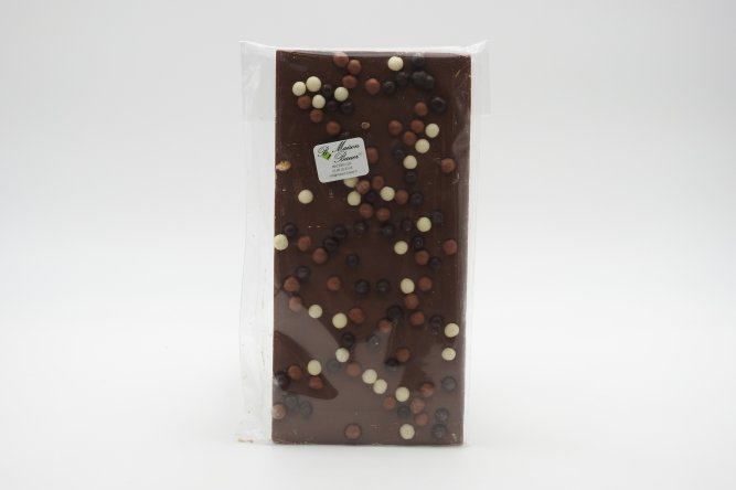Une qualité artisanale pour cette tablette de chocolat au lait généreusement garnie de crispies